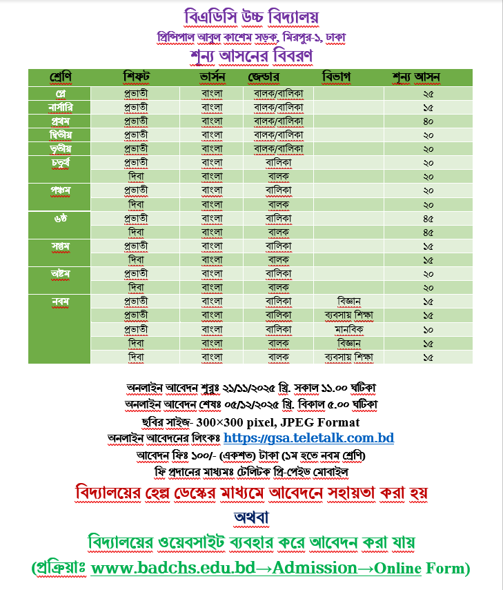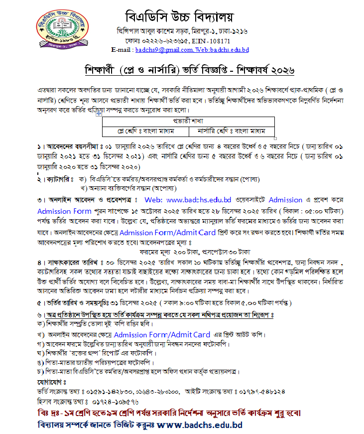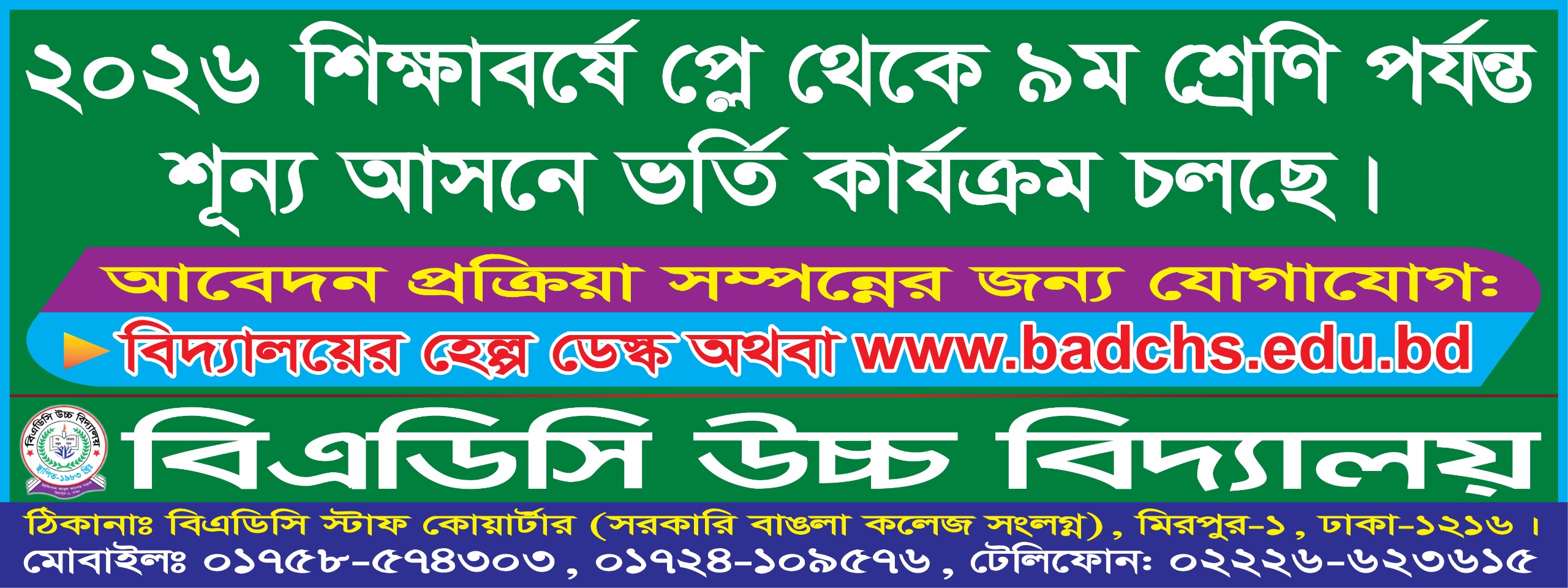 ২০২৫ শিক্ষাবর্ষে বার্ষিক ও নির্বাচনী পরীক্ষার উত্তরপত্র মূল্যায়ন, নিরীক্ষণ ও ফলাফল প্রকাশ সংক্রান্ত || ২০২৬ শিক্ষাবর্ষে প্রাক-প্রাথমিক (প্লে ও নার্সারি) শ্রেণিতে শিক্ষার্থী ভর্তি বিজ্ঞপ্তি। আবেদন করতে Admission অংশে প্রবেশ করে 'Admission Form' Select করুন। || 2026 শিক্ষাবর্ষে প্রথম শ্রেণি হতে নবম শ্রেণি পর্যন্ত ভর্তি কার্যক্রম চলছে (শুন্য আসনসহ দেখুন)। আবেদন করতে Admission অংশে প্রবেশ করে 'Online Form' Select করুন। ||
