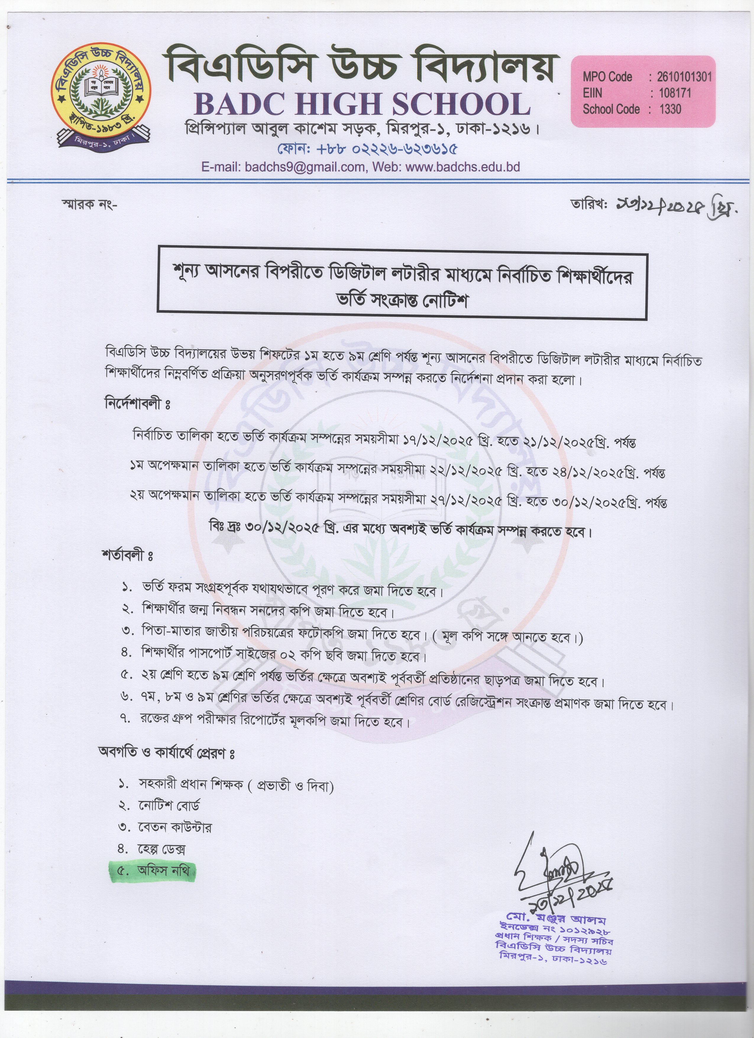 সভাপতি - বিএডিসিএইচএস, সদস্য পরিচালক (অর্থ), বিএডিসি